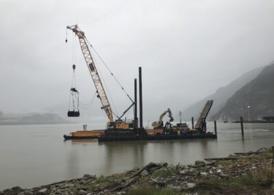 Due to the unique location of the project at the head of Howe Sound there were concerns about the possible impacts to the terrestrial and marine vegetation, various fish species, and marine mammals. JJM was able to tackle these challenges utilizing our extensive experience in operating in environmentally sensitive areas, and we developed a comprehensive construction environmental protection plan that addressed all areas of risk for the duration of the project.